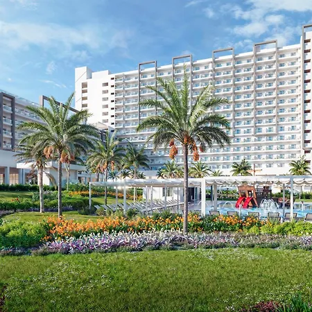 The newly built Riu Ventura Hotel Cancun, located about 5 minutes' walk from the long white - sand Playa Delfines Beach, features a spa centre, loungers, and a play area.